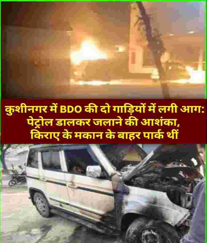 उत्तर प्रदेश: बीडीओ के सरकारी और निजी वाहन आगजनी का शिकार, जांच में जुटी पुलिस