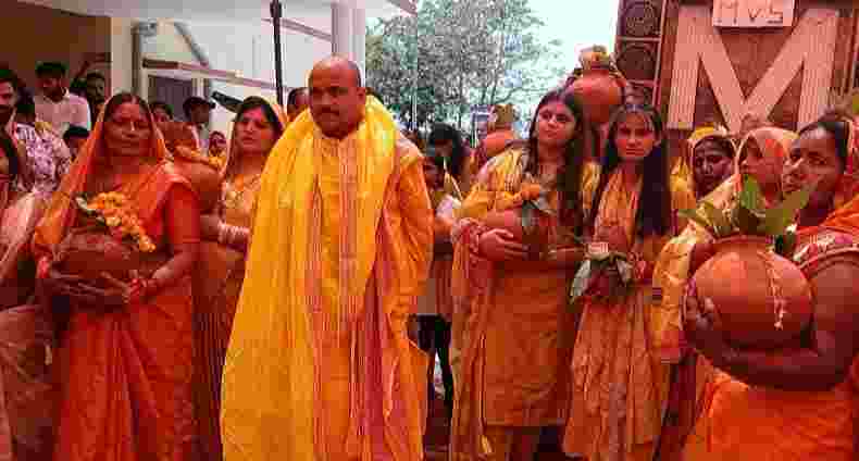 उत्तर प्रदेश: कारिया पटवा में श्रीमद् भागवत कथा हेतु भव्य कलश यात्रा निकाली गई, श्रद्धालुओं में उत्साह