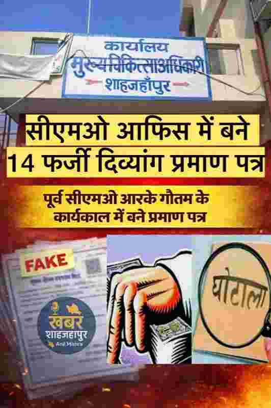 उत्तर प्रदेश: शाहजहांपुर CMO कार्यालय में फर्जी दिव्यांग प्रमाणपत्र का खुलासा, कई कर्मचारी निलंबित