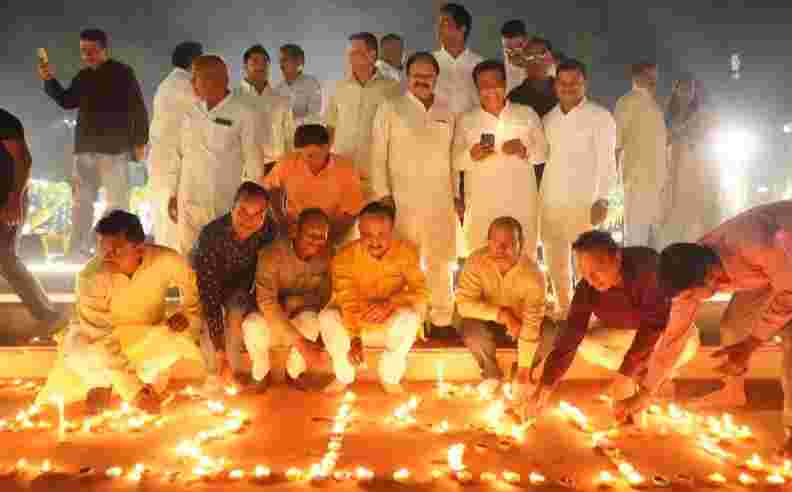राजस्थान: गोबर से निर्मित दिए की पुलिस थाने के पास प्रदर्शनी में हुआ उद्घाटन